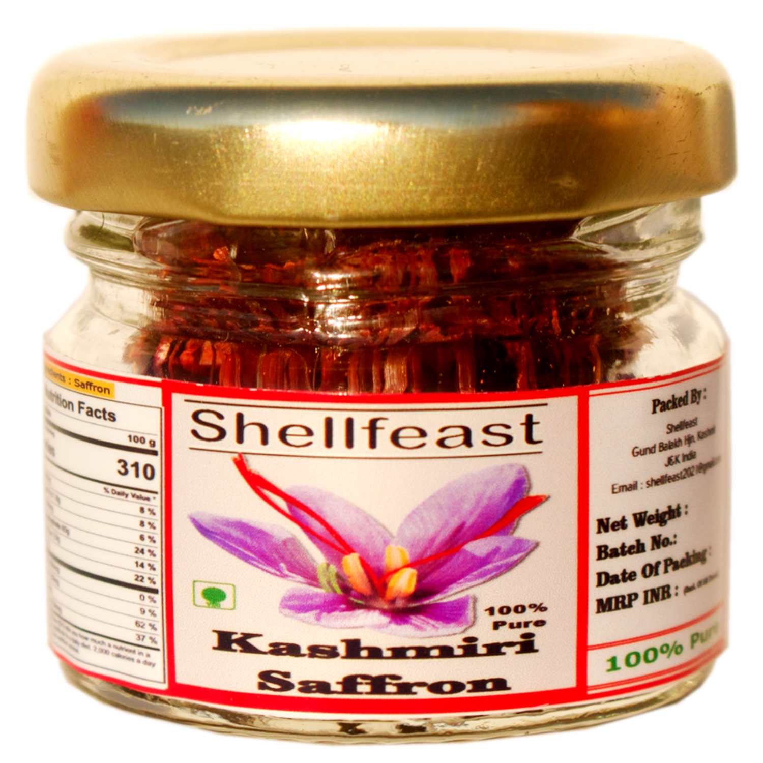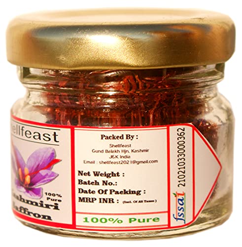Shellfeast Saffron A+++ Grade Mogra Kashmiri Kesar 1gm, 100% Pure Saffron , Kashmiri Zafran